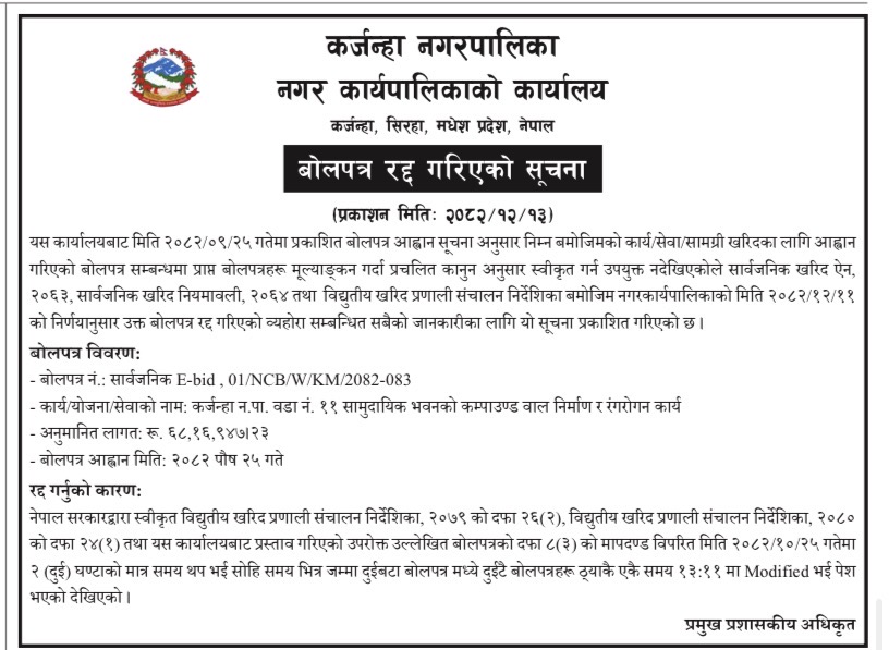 सार्वजनिक खरिद/बोलपत्र सूचना