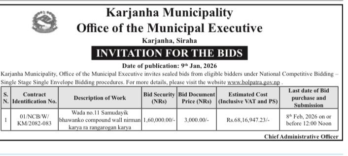 सार्वजनिक खरिद/बोलपत्र सूचना